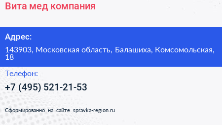 Вита-мед, компания по адресу 143903, Московская область, Балашиха, Комсомольская, 18 в дальнейшем Организация, размещена в следующих категориях: