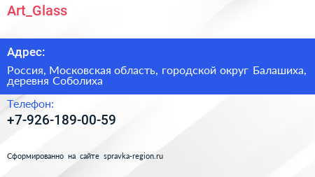 Art_Glass по адресу Россия, Московская область, городской округ Балашиха, деревня Соболиха в дальнейшем Организация, размещена в следующих категориях: