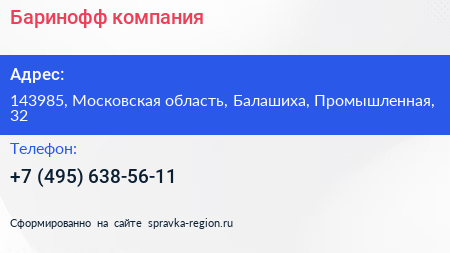 Баринофф, компания по адресу 143985, Московская область, Балашиха, Промышленная, 32 в дальнейшем Организация, размещена в следующих категориях: