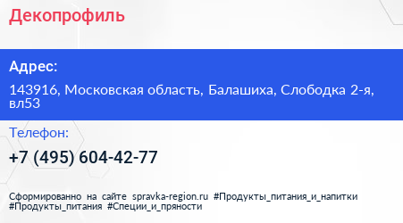 Декопрофиль по адресу 143916, Московская область, Балашиха, Слободка 2-я, вл53 в дальнейшем Организация, размещена в следующих категориях: