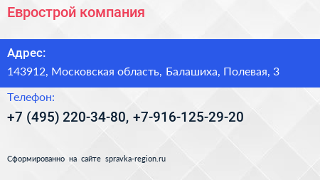 Еврострой, компания по адресу 143912, Московская область, Балашиха, Полевая, 3 в дальнейшем Организация, размещена в следующих категориях: