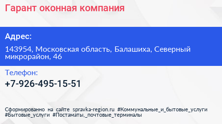 Гарант, оконная компания по адресу 143954, Московская область, Балашиха, Северный микрорайон, 46 в дальнейшем Организация, размещена в следующих категориях: