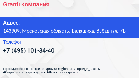 Granti, компания по адресу 143909, Московская область, Балашиха, Звёздная, 7Б в дальнейшем Организация, размещена в следующих категориях: