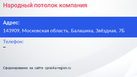 Народный потолок, компания по адресу 143909, Московская область, Балашиха, Звёздная, 7Б в дальнейшем Организация, размещена в следующих категориях: