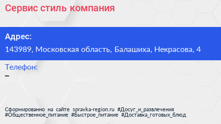 Сервис-стиль, компания по адресу 143989, Московская область, Балашиха, Некрасова, 4 в дальнейшем Организация, размещена в следующих категориях: