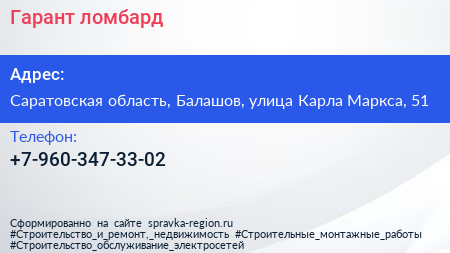 Гарант, ломбард по адресу Саратовская область, Балашов, улица Карла Маркса, 51 в дальнейшем Организация, размещена в следующих категориях: