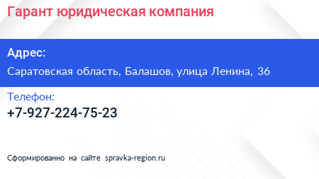 Гарант, юридическая компания по адресу Саратовская область, Балашов, улица Ленина, 36 в дальнейшем Организация, размещена в следующих категориях: