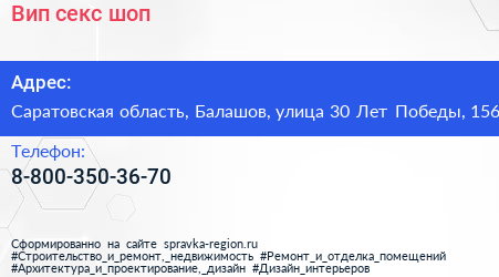 Вип, секс-шоп по адресу Саратовская область, Балашов, улица 30 Лет Победы, 156 в дальнейшем Организация, размещена в следующих категориях: