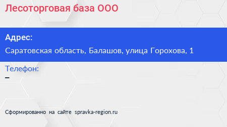 Лесоторговая база, ООО по адресу Саратовская область, Балашов, улица Горохова, 1 в дальнейшем Организация, размещена в следующих категориях: