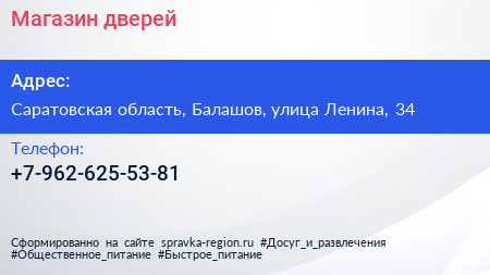 Магазин дверей по адресу Саратовская область, Балашов, улица Ленина, 34 в дальнейшем Организация, размещена в следующих категориях: