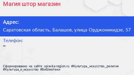 Магия штор, магазин по адресу Саратовская область, Балашов, улица Орджоникидзе, 57 в дальнейшем Организация, размещена в следующих категориях:
