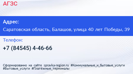 АГЗС по адресу Саратовская область, Балашов, улица 40 лет Победы, 39 в дальнейшем Организация, размещена в следующих категориях: