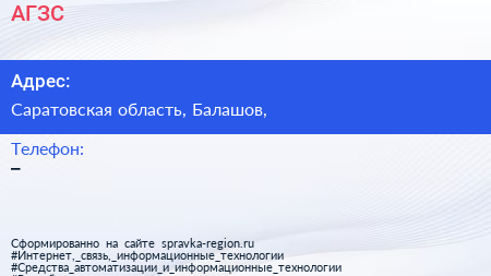 АГЗС по адресу Саратовская область, Балашов, в дальнейшем Организация, размещена в следующих категориях:
