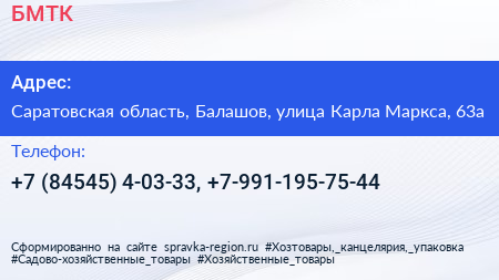 БМТК по адресу Саратовская область, Балашов, улица Карла Маркса, 63а в дальнейшем Организация, размещена в следующих категориях: