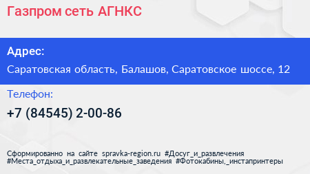 Газпром, сеть АГНКС по адресу Саратовская область, Балашов, Саратовское шоссе, 12 в дальнейшем Организация, размещена в следующих категориях: