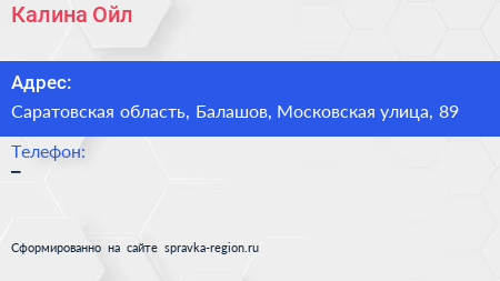 Калина Ойл по адресу Саратовская область, Балашов, Московская улица, 89 в дальнейшем Организация, размещена в следующих категориях: