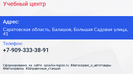 Учебный центр по адресу Саратовская область, Балашов, Большая Садовая улица, 41 в дальнейшем Организация, размещена в следующих категориях: