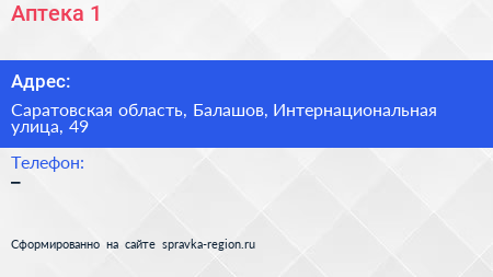 Аптека №1 по адресу Саратовская область, Балашов, Интернациональная улица, 49 в дальнейшем Организация, размещена в следующих категориях: