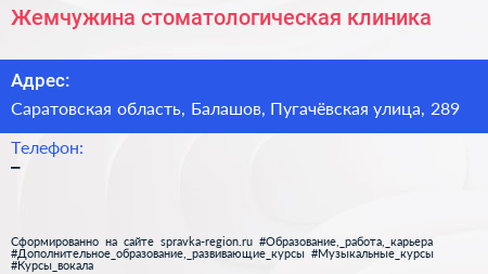 Жемчужина, стоматологическая клиника по адресу Саратовская область, Балашов, Пугачёвская улица, 289 в дальнейшем Организация, размещена в следующих категориях: