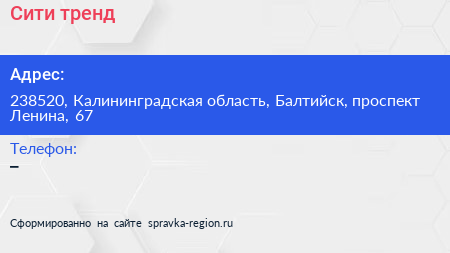 Сити тренд по адресу 238520, Калининградская область, Балтийск, проспект Ленина, 67 в дальнейшем Организация, размещена в следующих категориях: