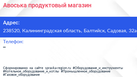 Авоська, продуктовый магазин по адресу 238520, Калининградская область, Балтийск, Садовая, 32а в дальнейшем Организация, размещена в следующих категориях: