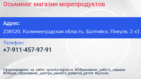 Осьминог, магазин морепродуктов по адресу 238520, Калининградская область, Балтийск, Пикуля, 3 к1 в дальнейшем Организация, размещена в следующих категориях: