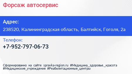 Форсаж, автосервис по адресу 238520, Калининградская область, Балтийск, Гоголя, 2а в дальнейшем Организация, размещена в следующих категориях: