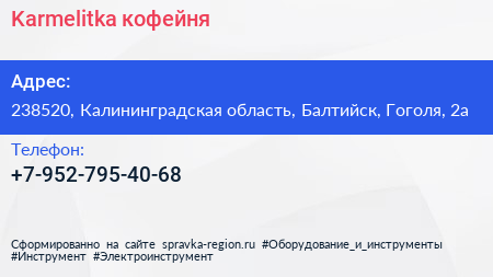 Karmelitka, кофейня по адресу 238520, Калининградская область, Балтийск, Гоголя, 2а в дальнейшем Организация, размещена в следующих категориях:
