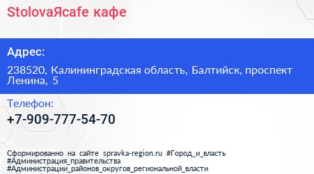 StolovaЯcafe, кафе по адресу 238520, Калининградская область, Балтийск, проспект Ленина, 5 в дальнейшем Организация, размещена в следующих категориях: