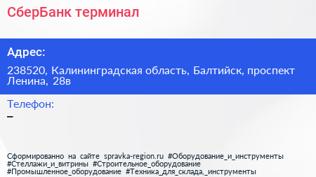 СберБанк, терминал по адресу 238520, Калининградская область, Балтийск, проспект Ленина, 28в в дальнейшем Организация, размещена в следующих категориях: