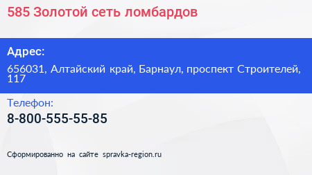 585*Золотой, сеть ломбардов по адресу 656031, Алтайский край, Барнаул, проспект Строителей, 117 в дальнейшем Организация, размещена в следующих категориях: