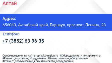 Алтай по адресу 656043, Алтайский край, Барнаул, проспект Ленина, 23 в дальнейшем Организация, размещена в следующих категориях: