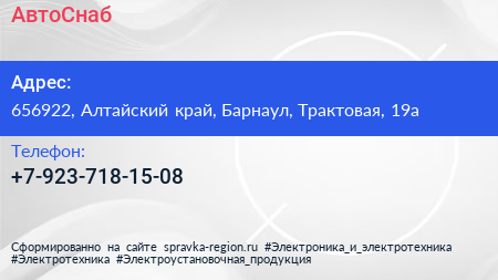 АвтоСнаб по адресу 656922, Алтайский край, Барнаул, Трактовая, 19а в дальнейшем Организация, размещена в следующих категориях: