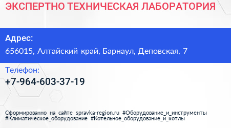 ЭКСПЕРТНО-ТЕХНИЧЕСКАЯ ЛАБОРАТОРИЯ по адресу 656015, Алтайский край, Барнаул, Деповская, 7 в дальнейшем Организация, размещена в следующих категориях: