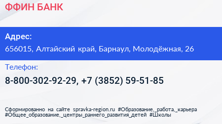 ФФИН БАНК по адресу 656015, Алтайский край, Барнаул, Молодёжная, 26 в дальнейшем Организация, размещена в следующих категориях: