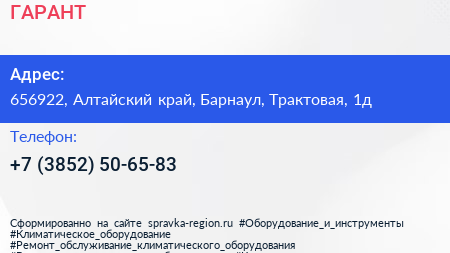 ГАРАНТ по адресу 656922, Алтайский край, Барнаул, Трактовая, 1д в дальнейшем Организация, размещена в следующих категориях: