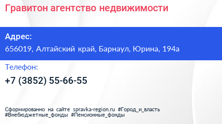 Гравитон, агентство недвижимости по адресу 656019, Алтайский край, Барнаул, Юрина, 194а в дальнейшем Организация, размещена в следующих категориях: