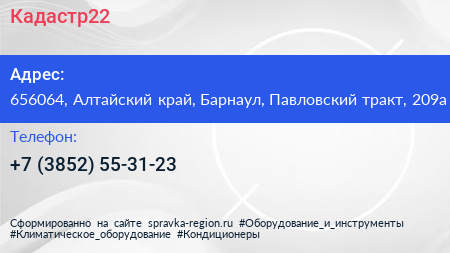 Кадастр22 по адресу 656064, Алтайский край, Барнаул, Павловский тракт, 209а в дальнейшем Организация, размещена в следующих категориях: