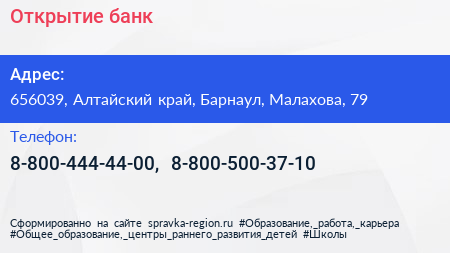 Открытие, банк по адресу 656039, Алтайский край, Барнаул, Малахова, 79 в дальнейшем Организация, размещена в следующих категориях: