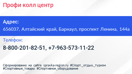 Профи, колл-центр по адресу 656037, Алтайский край, Барнаул, проспект Ленина, 144а в дальнейшем Организация, размещена в следующих категориях: