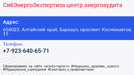 СибЭнергоЭкспертиза, центр энергоаудита по адресу 656023, Алтайский край, Барнаул, проспект Космонавтов, 15 в дальнейшем Организация, размещена в следующих категориях: