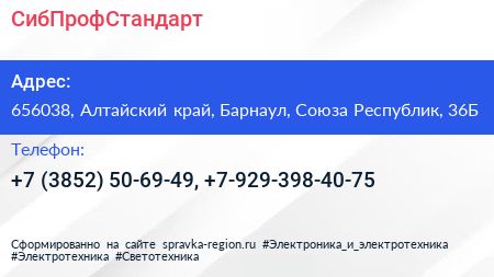СибПрофСтандарт по адресу 656038, Алтайский край, Барнаул, Союза Республик, 36Б в дальнейшем Организация, размещена в следующих категориях: