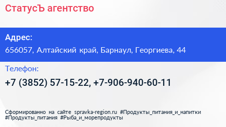 СтатусЪ, агентство по адресу 656057, Алтайский край, Барнаул, Георгиева, 44 в дальнейшем Организация, размещена в следующих категориях: