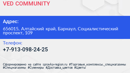 VED COMMUNITY по адресу 656015, Алтайский край, Барнаул, Социалистический проспект, 109 в дальнейшем Организация, размещена в следующих категориях:
