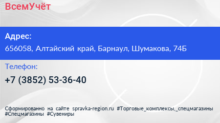 ВсемУчёт по адресу 656058, Алтайский край, Барнаул, Шумакова, 74Б в дальнейшем Организация, размещена в следующих категориях: