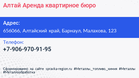 Алтай Аренда, квартирное бюро по адресу 656066, Алтайский край, Барнаул, Малахова, 123 в дальнейшем Организация, размещена в следующих категориях: