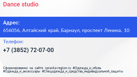 Dance studio по адресу 656056, Алтайский край, Барнаул, проспект Ленина, 10 в дальнейшем Организация, размещена в следующих категориях: