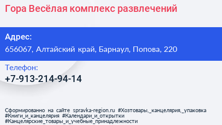 Гора Весёлая, комплекс развлечений по адресу 656067, Алтайский край, Барнаул, Попова, 220 в дальнейшем Организация, размещена в следующих категориях: