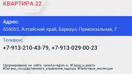 КВАРТИРА-22 по адресу 656015, Алтайский край, Барнаул, Привокзальная, 7 в дальнейшем Организация, размещена в следующих категориях: