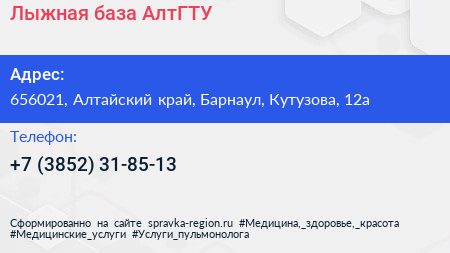 Лыжная база, АлтГТУ по адресу 656021, Алтайский край, Барнаул, Кутузова, 12а в дальнейшем Организация, размещена в следующих категориях: